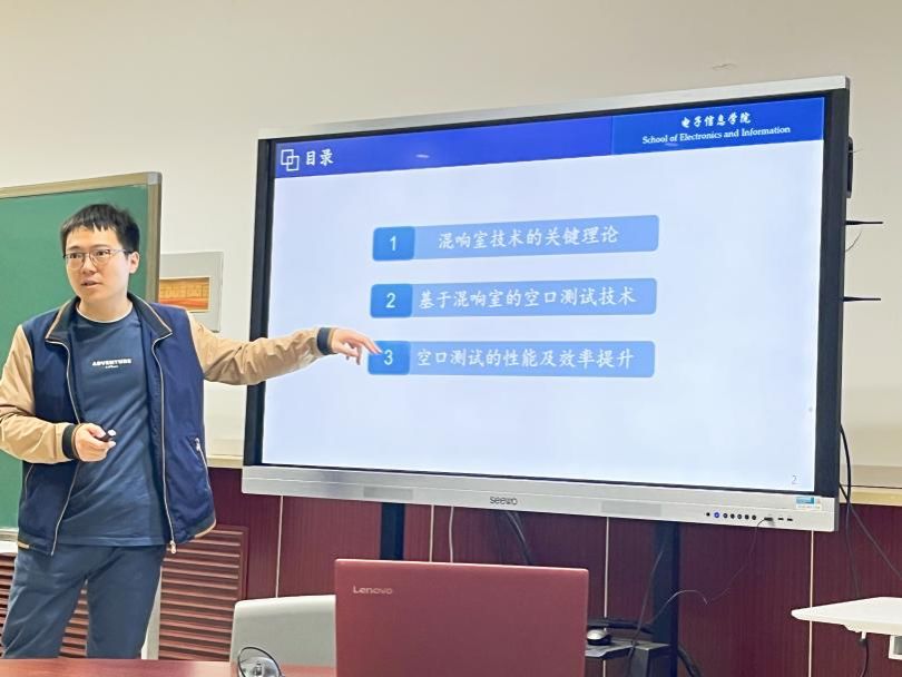 随后,薛威副教授做了题为《浅谈混响室技术及其在空口测试领域的应用》的专题报告。本报告从物联网及通信产业中无线设备研发面临的测试压力和挑战入手,聚焦如何经济且高效地开展空口测试这一热点问题,分别从电磁场理论和统计测量理论两个角度介绍了混响室的工作原理,及混响室空口测试技术的研究方法,同时讨论了混响室空口测试技术在相关产业中的应用优势及现存问题。此外,还分享了混响室技术在空口测试领域的典型应用,及其与无线通信、电磁超表面等方向的交叉应用。