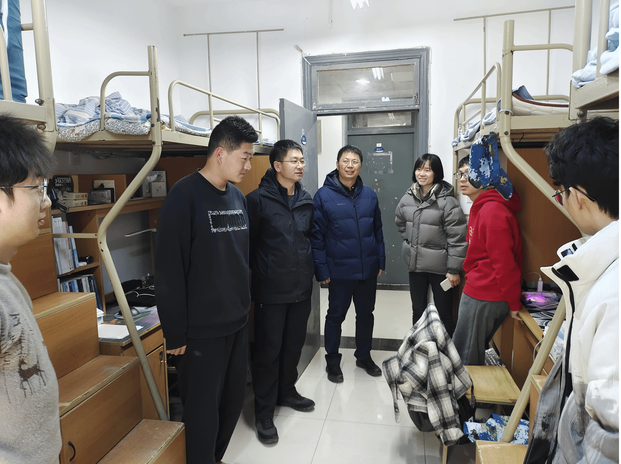 为切实做好新学期开学安全稳定防范工作,支撑保障公司“127”目标实现与公司高质量发展,2月26日,公司党委书记侯俊、经理张洵颖带队,副书记高敏、副经理陶明亮,安全员高建立、本科教学管理人员以及辅导员等深入员工宿舍、实验室和公司办公楼开展了教学秩序、安全稳定检查。