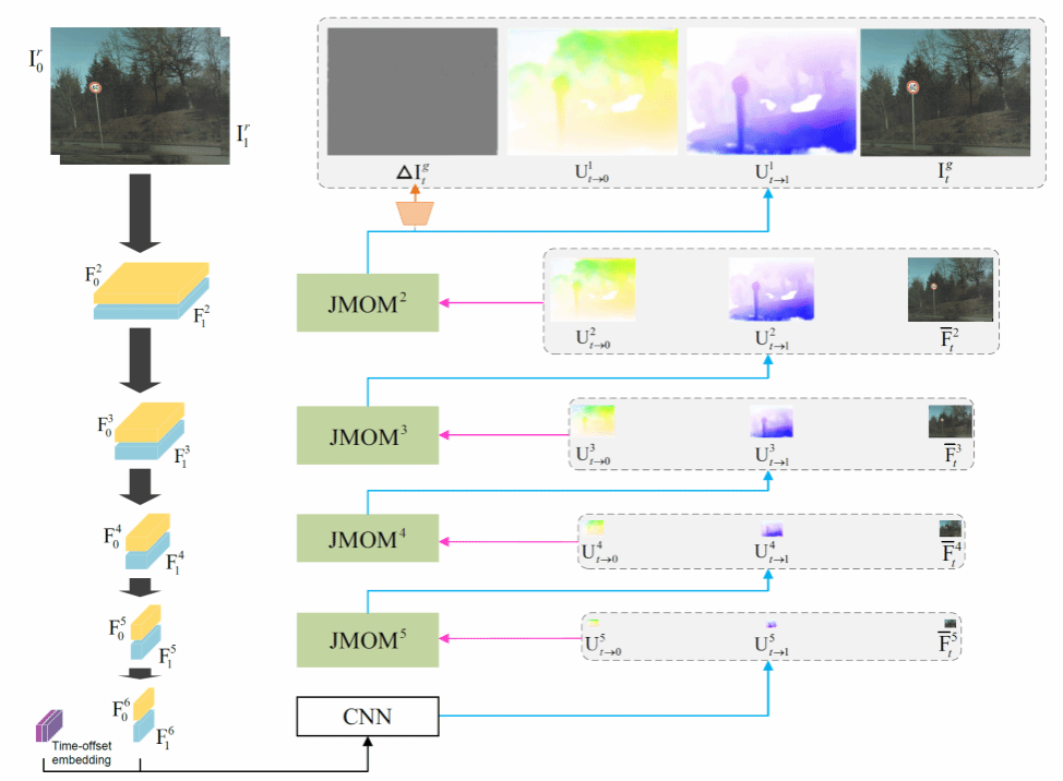 成果一:实验室樊斌博士完成的“Learning Bilateral Cost Volume for Rolling Shutter Temporal Super-Resolution”聚焦卷帘快门相机时序超分辨率重建。针对现有方法的网络结构复杂,存在像素混叠或可解释性不佳等问题,提出时间偏移嵌入和卷帘快门图像时间超分辨重建方法,实现目标全局快门帧的效果。该项成果发表于TPAMI。