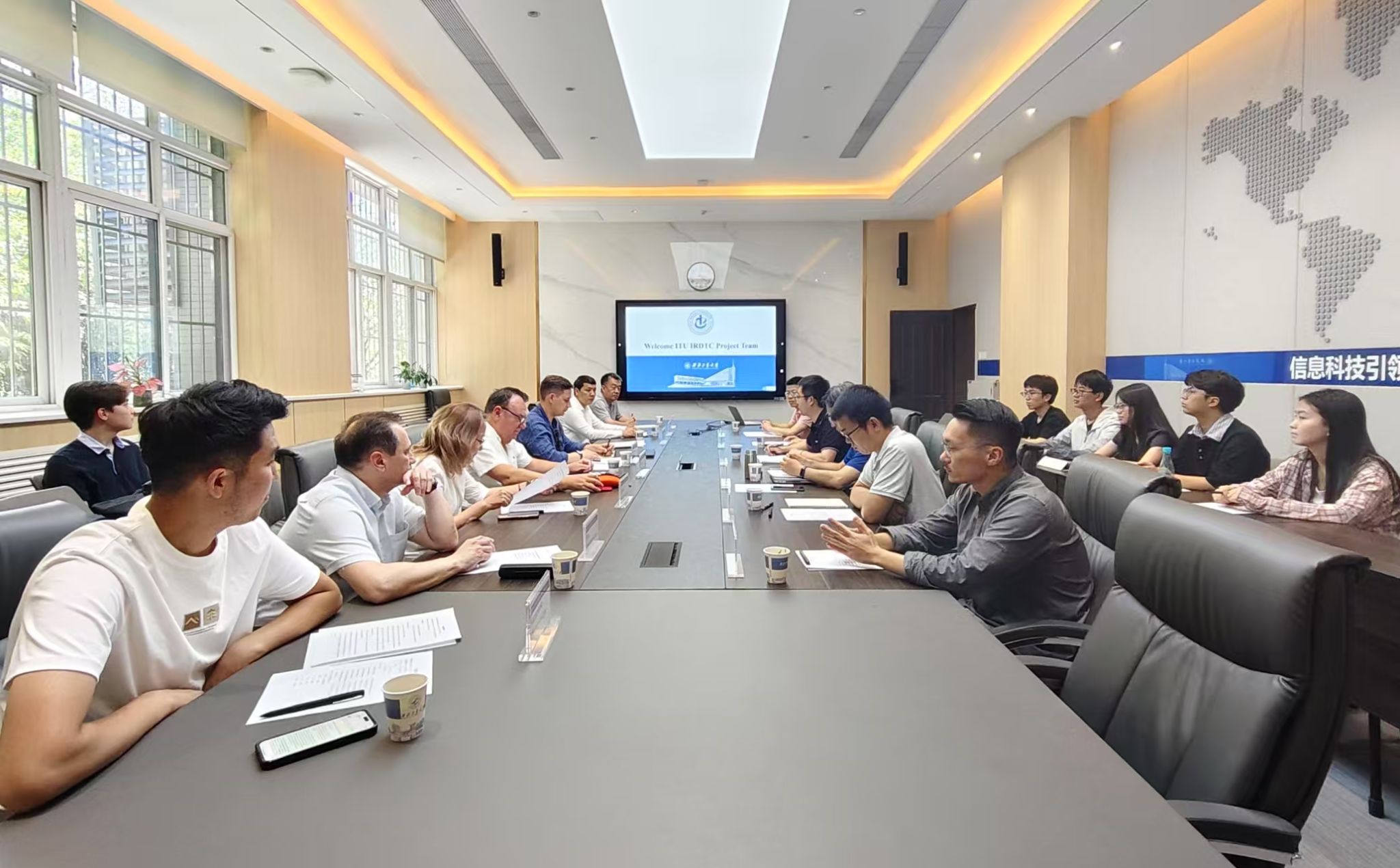 会议伊始,陶明亮致欢迎辞,双方与会人员相互介绍。与会人员共同观看了TapTap宣传片,直观了解公司的整体情况、办学特色和科研实力。在技术交流环节,国际电信联盟项目团队详细介绍了研究领域及团队成员国高校的情况。公司教师代表张若南、李波、刘自成、杨光伟及刘皓辰分别介绍了研究方向、技术优势与最新进展。双方随后围绕相关的技术领域展开热烈讨论,深入探讨了潜在的合作方向与可能性。