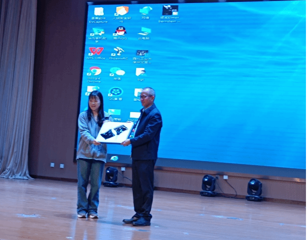 在鄞州中学报告厅,苏继东研究员为700余名高一学子做了题为《仰望星空,脚踏实地》的科普报告。他从宇宙大爆炸出发,启发师生思考:人类渺小而宇宙浩瀚,那人生价值是什么?如何实现人生价值?他提出科研道路上必不可少的四种思维,即梦想思维、创新思维、哲学思维和科学思维。他结合自身经历与切身体会就新中国七十年来的航天事业和航天精神进行讲解,重点介绍中国航天发展的三大里程碑:东方红1号、神舟5号和嫦娥1号,以及五大航天精神谱系:“航天传统精神”“两弹一星精神”“载人航天精神”“新时代北斗精神”和“探月精神”。最后,苏继东研究员鼓励同学们传承、弘扬的航天精神,立大志向、入主战场、上大舞台、干大事业。科普报告之后,高永胜和苏继东分别代表公司向鄞州中学赠送运-20飞机模型、仿蝠鲼柔体潜水器模型等礼物。