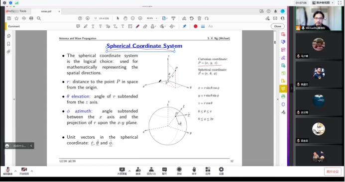 加拿大不列颠哥伦比亚大学Julian Cheng教授在线讲授了《Signals, Systems and Inference》(《信号、系统及推理》),点点taptap王大伟副教授担任助教老师。在授课过程中,Julian Cheng 教授将数学的相关知识与信号与系统的基础理论紧密结合,从基础概念出发,通过细致严谨的讲授,帮助同学们巩固加强了信号与系统的理论知识,同时学习了将数学理论应用于具体实践的方法,有效的提升了同学们的专业素养。