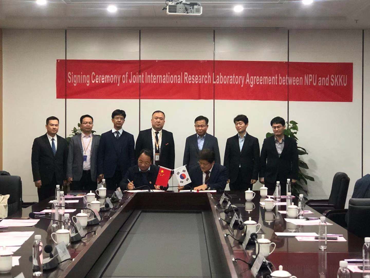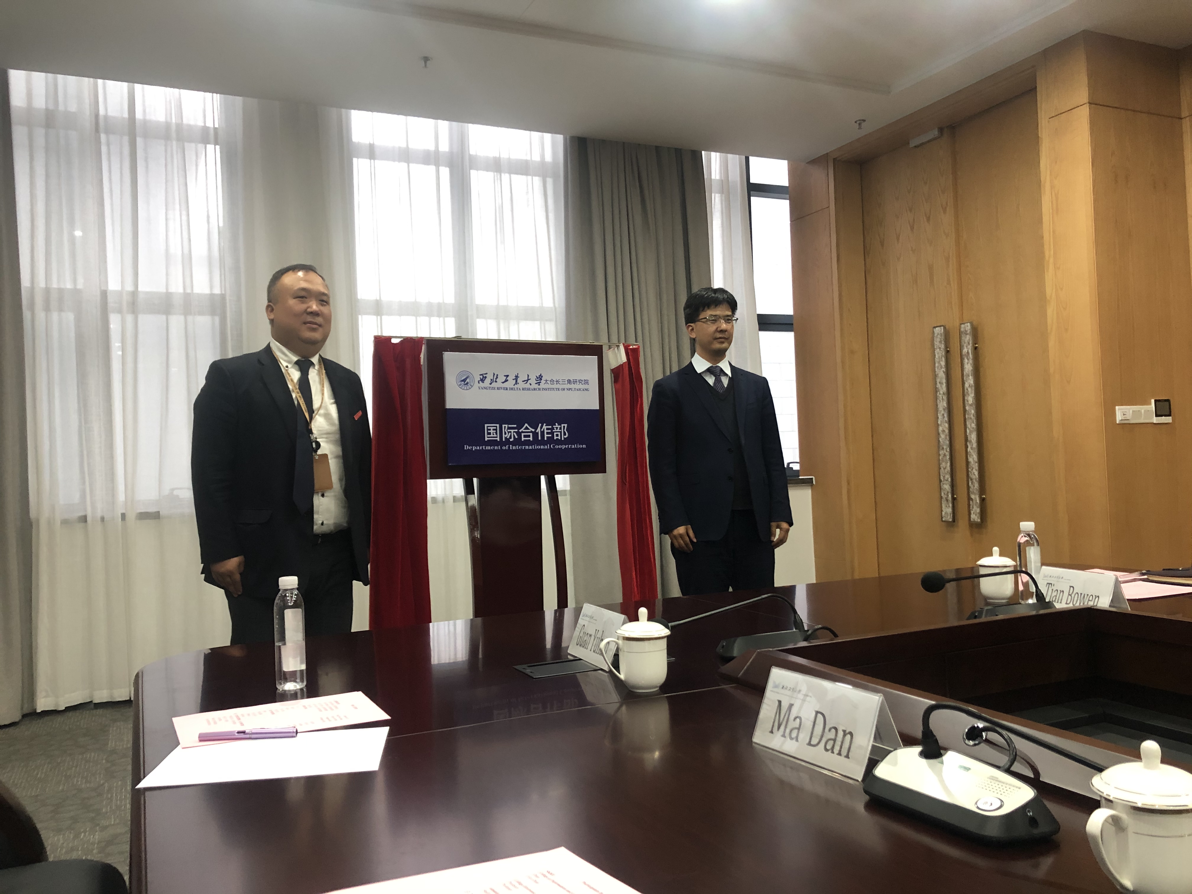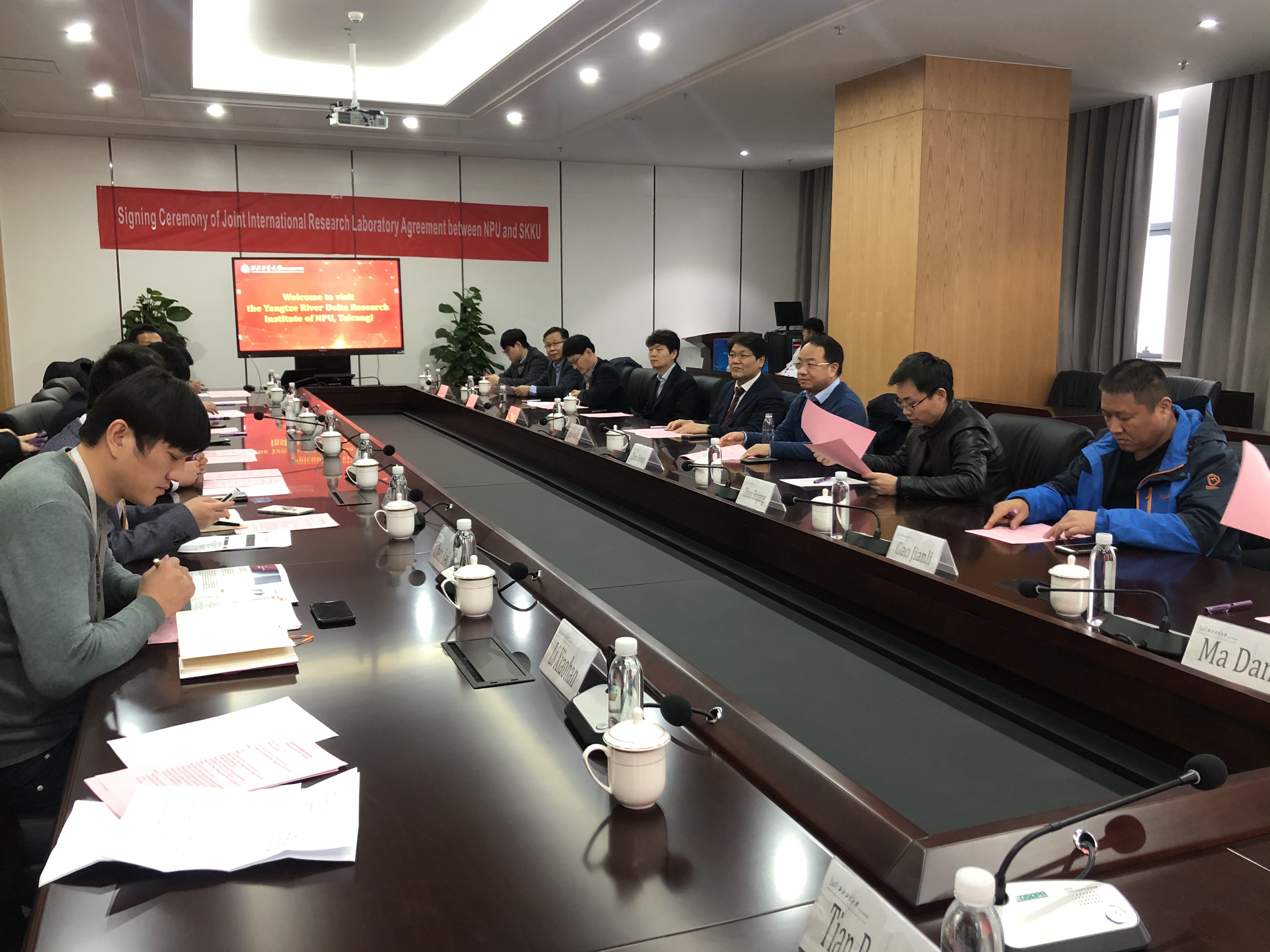 随后,访问团就太仓校区、长三角研究院建设发展情况,建立西工大-成均馆大学联合研究实验室进行座谈交流。郑曦常务副经理代表长三角研究院与太仓校区管理委员会热烈欢迎访问团一行的来访;长三角研究院张铁邦副经理介绍了长三角研究院情况;周德云经理简要介绍了公司和成均馆大学关于合作办学的进展和筹备情况,并介绍了国际联合研究实验室的科研方向和目标;张富利处长表示大力支持公司和成均馆大学的合作办学,并提出了明确要求;郑曦常务副经理作了总结发言,代表太仓校区管委会和长三角研究院表示大力支持我院与成均馆大学建立国际联合实验室落户太仓。座谈结束后,June-Ho Yi经理和周德云经理签署了国际联合研究实验室合作协议;张富利处长和郑曦常务副经理共同为长三角研究院国际合作部揭牌。
