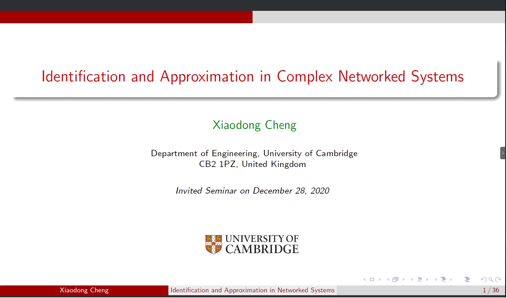 应点点taptap张堃副教授邀请,2020年12月28日晚上,英国剑桥大学Xiaodong Cheng博士举行了题为“Identification and Approximation in Complex Networked Systems”的在线学术报告。Xiaodong Cheng博士的报告分为了两个部分。第一部分介绍了网络化系统中的系统辨识问题,展示了这一方向上的最新成果。第二部分介绍了复杂网络化系统的模型降阶问题和方法,指出了未来发展方向和今后的思考。