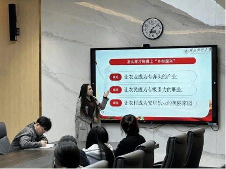 最后,李玉蝶和孙培洋两位同志做出总结,提到要秉持以女排精神为代表的时代精神,以青春之力开拓进取,以实际行动践行新时代先锋的使命;要以模范先锋为榜样,积极投身于乡村振兴事业,彰显新时代气质,为实现中国梦而不懈奋斗。